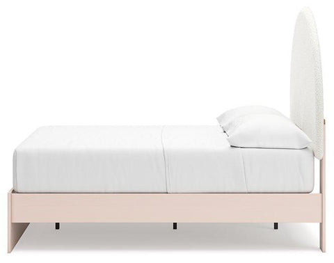 Product Details- Includes upholstered panel headboard, platform rails, panel footboard and roll slats