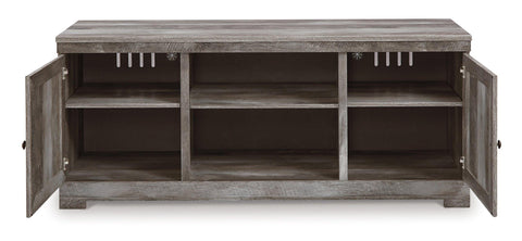 This TV stand with fireplace insert is sure to win your heart with its daring designer take on modern rustic. The stand’s crisp, clean and minimalist-chic profile is enriched with a striking replicated oak grain with thick plank styling and a weathered gray finish for that much more authentic character. Crossbuck detailing adds a brilliant barn door inspired touch. What really turns up the heat: an electric infrared fireplace insert with faux firebrick surround that operates with or without infrared heat and includes a multi flame feature, 7-level temperature setting, five brightness levels and LED glowing embers effect.