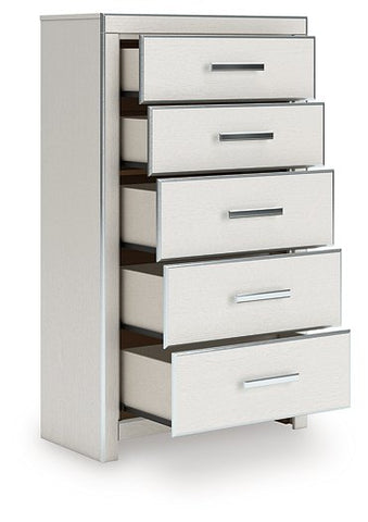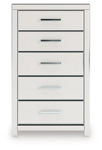 If glitz and glam are your jam, you’re gonna love this chest of drawers. Dazzling chrome-tone touches wow against a sophisticated matte white finish for a pop of stunning pizzazz. And the spacious storage drawers, with large-scale handles and faceted details, don’t disappoint. Loaded with serious sparkle, it's a simply splendid way to wake up your inner sanctum’s style.