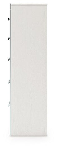 - Matte white finish with subtle replicated wood grain